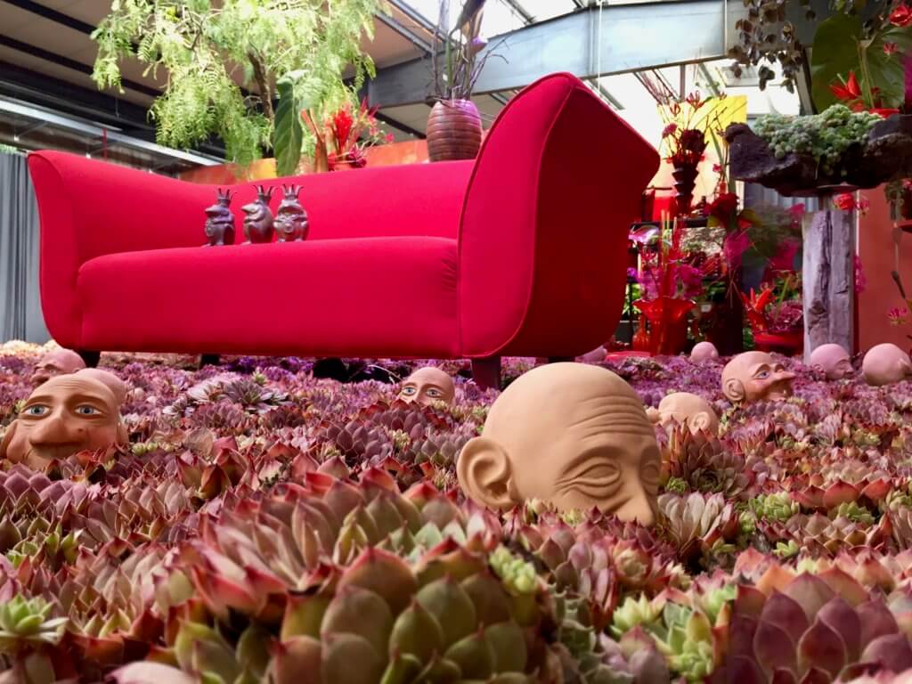 Und das Beste zum Schluss: Wir bekamen exklusiv für Sie Zutritt zu den Vorbereitungen für die Blumenschau „Feel the (Heart)Beat“, die vom 20. Juli bis 4. August im Fruchtschuppen zu sehen sein wird. Da geht es bunt und lebhaft zu. Die Farbe Rot überwiegt – passend zum Herz-Thema. Die Arrangements sind teilweise ausgeflippt, teilweise eher romantisch. Auf jeden Fall ein spannendes Erlebnis. Sehen Sie selbst:
